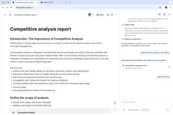 Zoom is also adding more features related to document creation and management. Through the new companion update, users can draft and edit documents based on meeting details. The company said that users can start drafting documents within the companion surface and shift the project to Zoom Docs and collaborate with teammates. It supports the export documents to MD, PDF, Microsoft Word, and Zoom Docs.