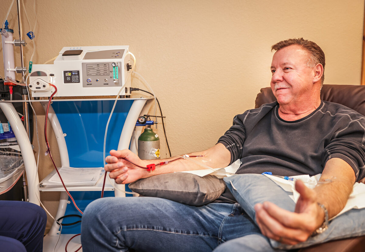 Patient Jeff Miller receives extracorporeal blood oxygenation and ozonation treatment at The Natural Path clinic in Kalispell on Nov. 20, 2025. Hunter D’Antuono | Flathead Beacon