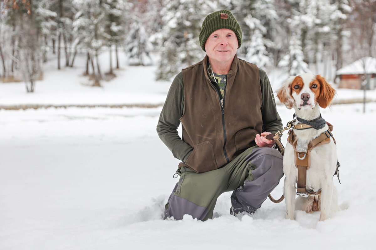 Kevin Moore and his dog Rip in Woodland Park in Kalispell on Dec. 3, 2025. Hunter D’Antuono | Flathead Beacon