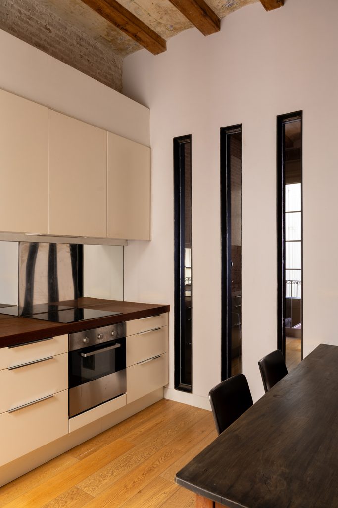 A careful accumulation of inherited details defines this early 20th-century building in Ciutat Vella. Built in 1910 at the heart of Barcelona’s old town, this small apartment building carries the language of its era through Catalan vaulted ceilings, exposed timber beams and original carpentry that shapes each room’s proportions. A sensitive restoration completed in 2013 retains this architectural backbone while quietly recalibrating the interiors for contemporary living.
