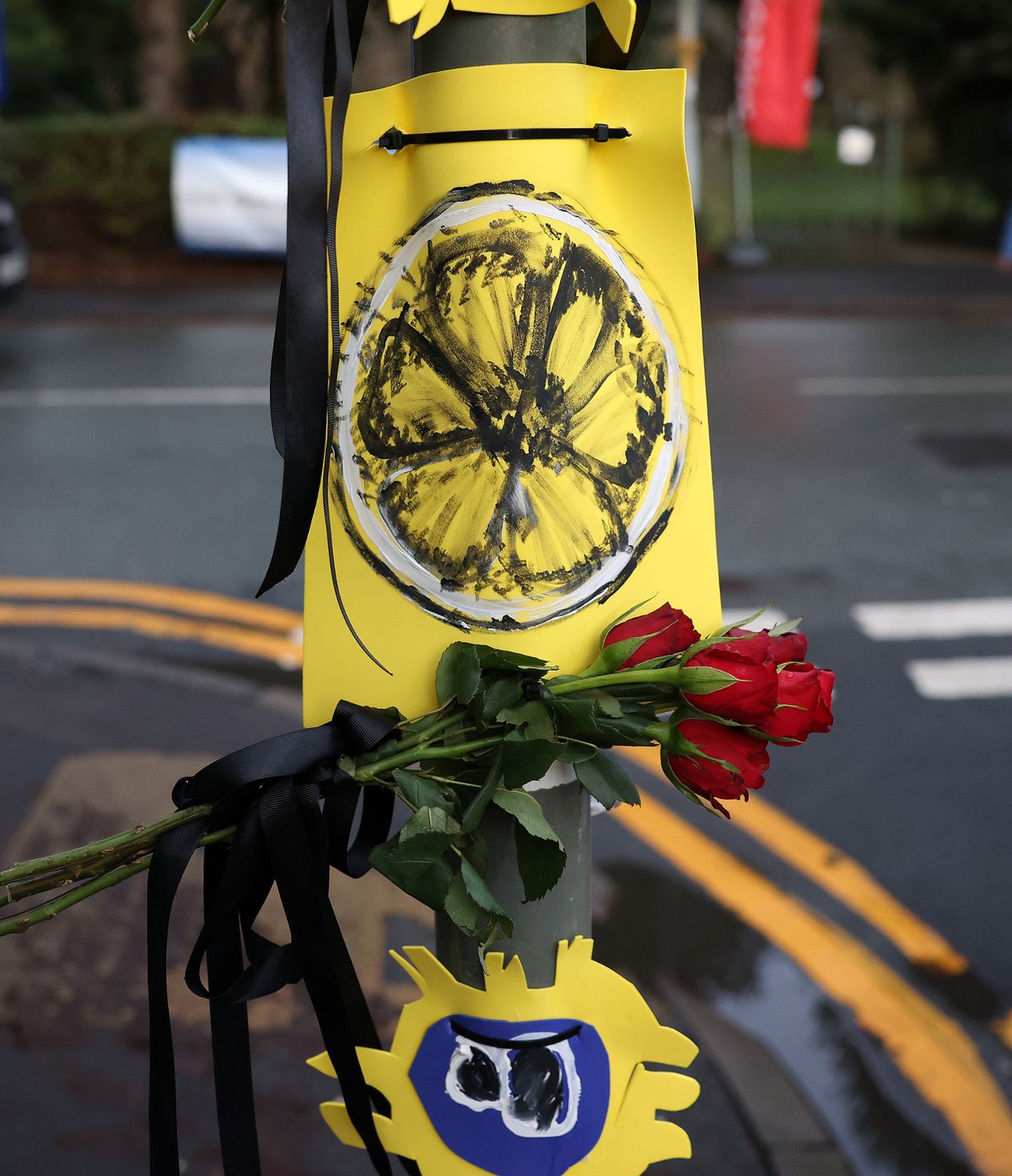 Tributes on lamp posts in Heaton Moor (Image: Sean Hansford | Manchester Evening News)