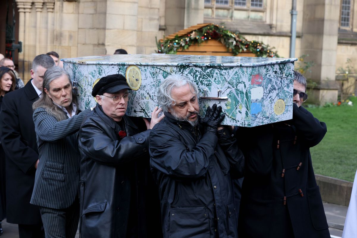 All of Mani‘s Stone Roses bandmates were in attendance at the service, including drummer Alan ‘Reni’ Wren and guitarist John Squire. Many more greats from the world of music filled the pews, including Paul Weller, Liam Gallagher, Oasis’ Bonehead and Andy Bell, The Smiths’ Mike Joyce, Joy Division’s Peter Hook, and members of The Courteeners and Blossoms.