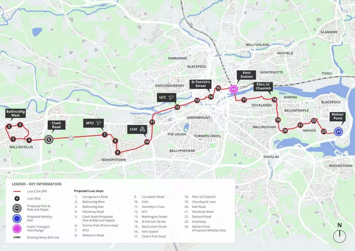 Proposed route from Ballincollig to Mahon(Image: Cork Luas)