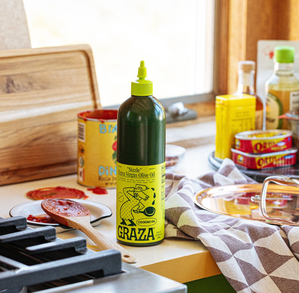 Coming in its signature squeeze bottle with a joyful label, the offerings from olive oil brand Graza are always a great idea. Their “Sizzle” option is a milder oil that’s made for everyday cooking.