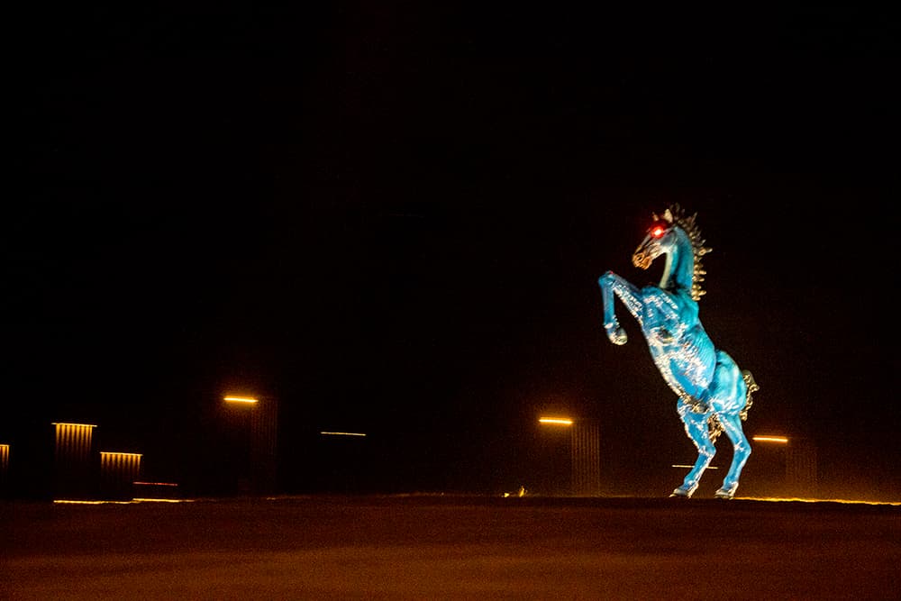 Luis Jimenez, the artist behind the sculpture, died in 2006, after a part of the horse came loose while he was working on it. The loose piece pinned him to a support beam and severed one of his arteries.