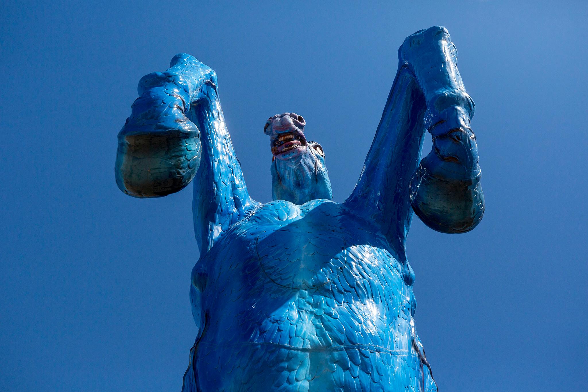 The sculpture’s popular nickname, Blucifer, is partly due to the glowing red eyes, but also the fact that it killed its creator.