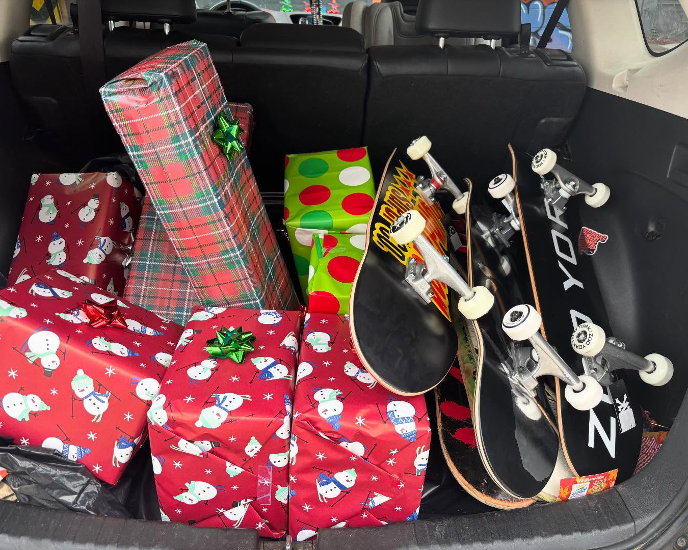 Starting in 2020, she began collecting money to buy skateboards for kids in need for the holidays.