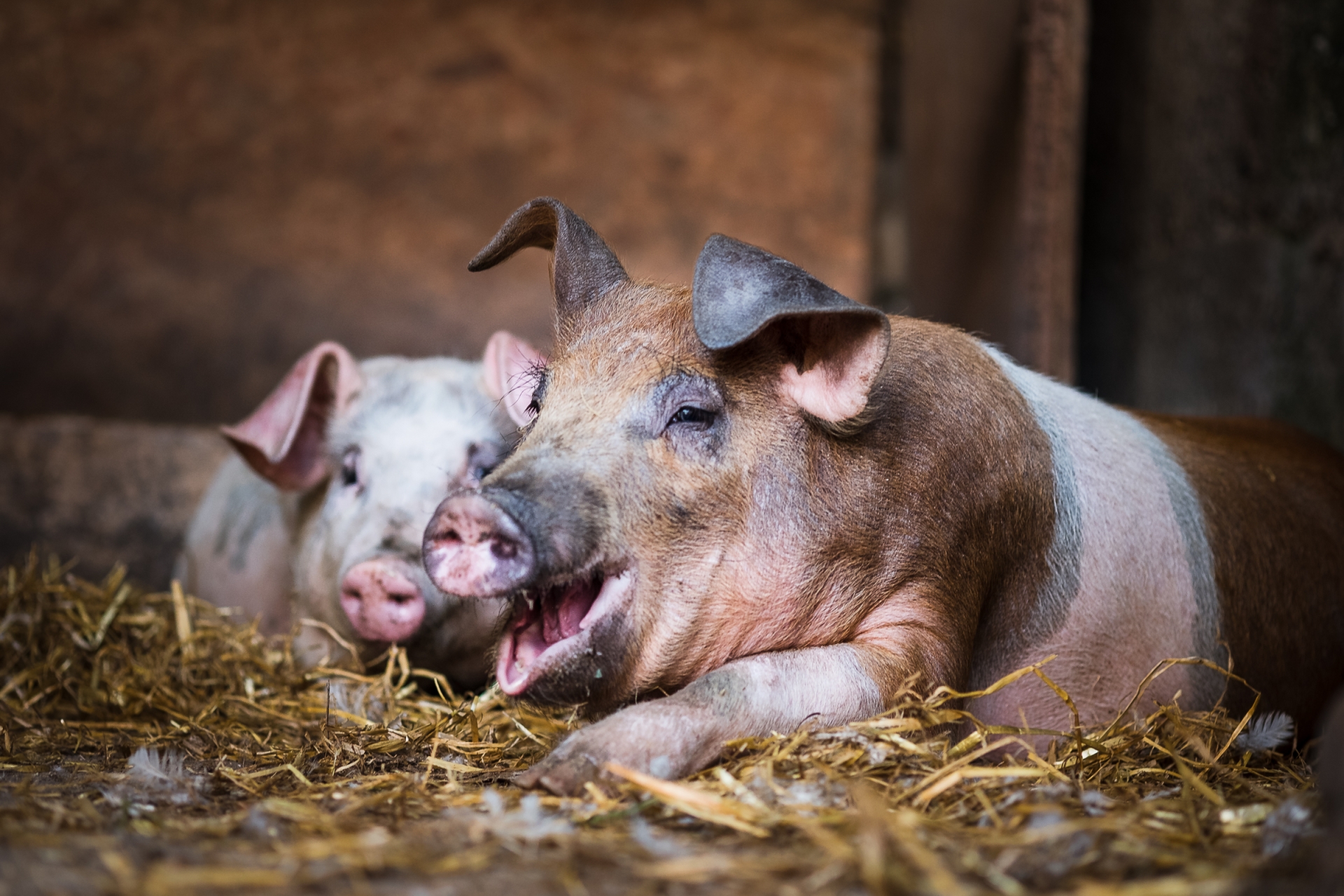“I went into the pig sty and sat down with two young pigs. They rushed all around me and were all excited to see something happening in their pig pen.