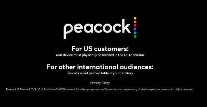 Peacock TV blocked in Ireland
