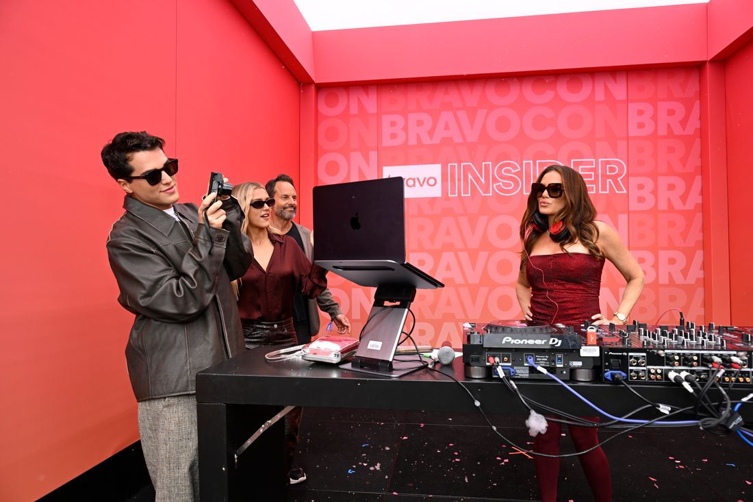 Of course they got Meredith Marks to open BravoCon with a DJ set. At 9:30 a.m, under the bleaching Las Vegas sun, fans gather at a stage set up on the plaza outside the convention center, their phones aloft to take pictures of the catchphrase factory of The Real Housewives of Salt Lake City playing remixes of gay bar hits — Lindsay Lohan’s “Rumors,” Tinashe’s “Nasty Girl,” Dua Lipa’s “Houdini” — spliced with those catchphrases — “Rumors and nastiness about the husband,” “I’m disengaging,” “You! Can! Leave!”