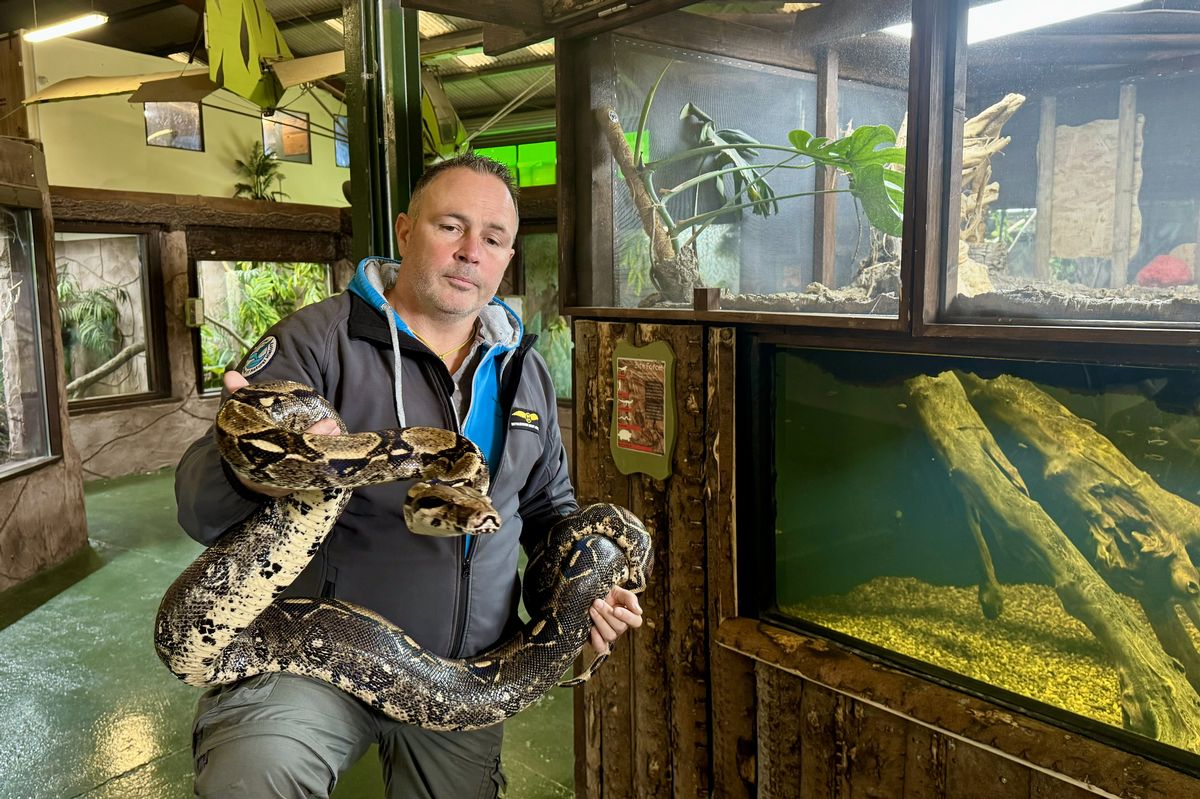 Zoo owner James Hennessy holding a boa constrictor at The National Reptile Zoo in Kilkenny