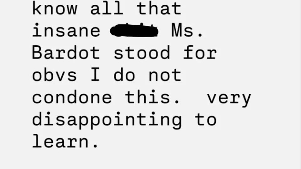 “Holy s—t, I did not know all that insane s—t Ms. Bardot stood for,” wrote Roan in a new story posted to her Instagram. “[Obviously] I do not condone this. Very disappointing to learn.”