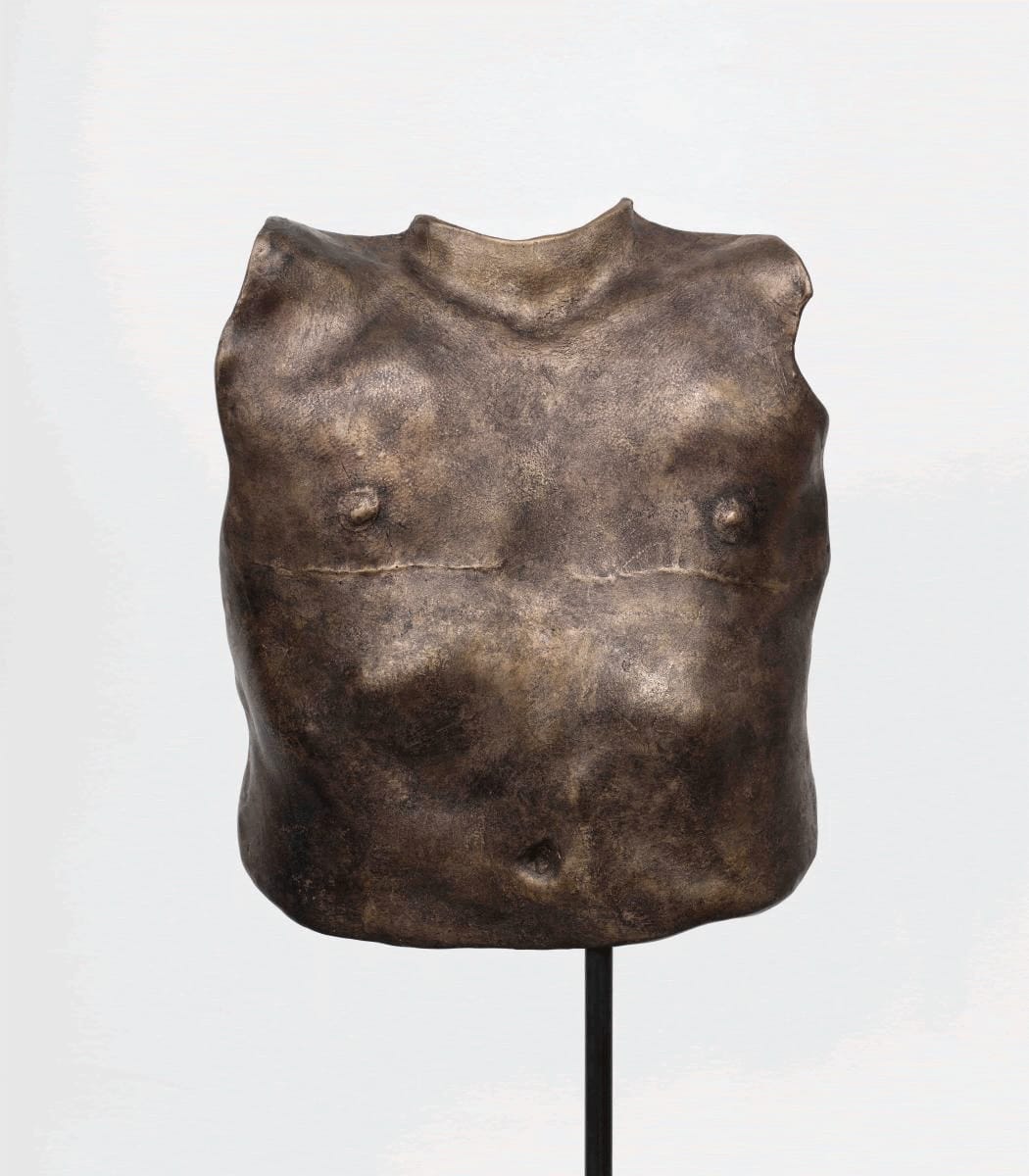 In poetic gestures that bear the trace of human experience, Young Joon Kwak creates alternative representations of queer and trans embodiment. This bronze, included in their solo exhibition at the Leslie-Lohman Museum in New York City this year, belongs to a series of evocative cast portraits of the artist’s friends and collaborators. The sculpture’s convex side depicts studio assistant Charlie’s chest after top surgery, while the concave surface shows his chest pre-surgery, wearing a compression garment known as a binder.