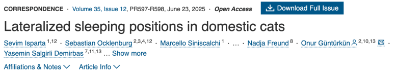 This finding is not only interesting from the perspective that cats show a significant population-level bias for the left side but also fits very well with previous findings on functional specialization in the mammalian right hemisphere. The right hemisphere is dominant for threat processing, and in most species, animals react faster when a predator is approaching from the left side. Moreover, the right hemisphere is dominant for spatial attention and the right amygdala in the processing of fear in response to a threat. Upon awakening, a leftward sleeping position would provide a fast left visual field view of objects that approach from below or from similarly elevated positions, thus allowing optimal conditions for fast processing of external stimuli in the right hemisphere of the brain.