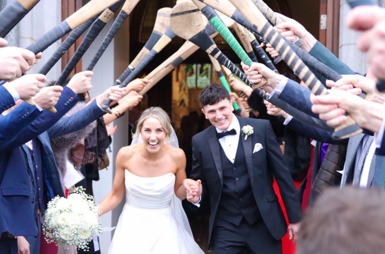 Conor’s Dunderry GAA Club team mates created an archway of hurlers as he and his bride made their way out of St Patrick’s Church following their wedding ceremony.
