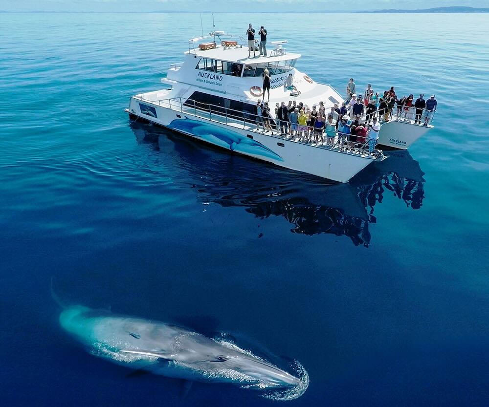 Brydes whale surfaces for tour boat (File photo by Auckland Whale and Dolphin Safari – CC BY-SA 4.0)