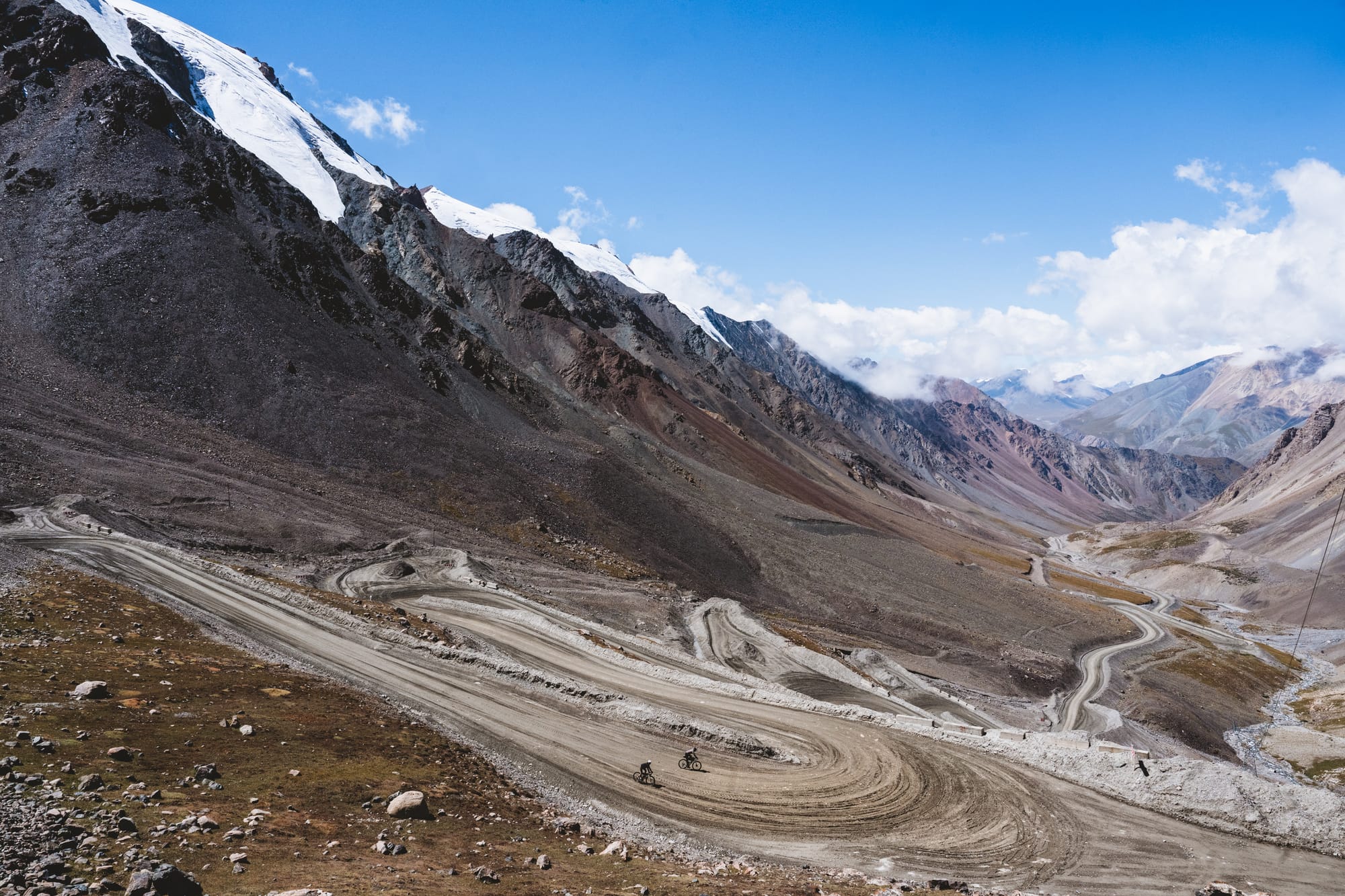 Two bold riders master the descent from one of the most spectacular mountain passes in Kyrgyzstan. | Photo by Nils Laengner (@nils_laengner)