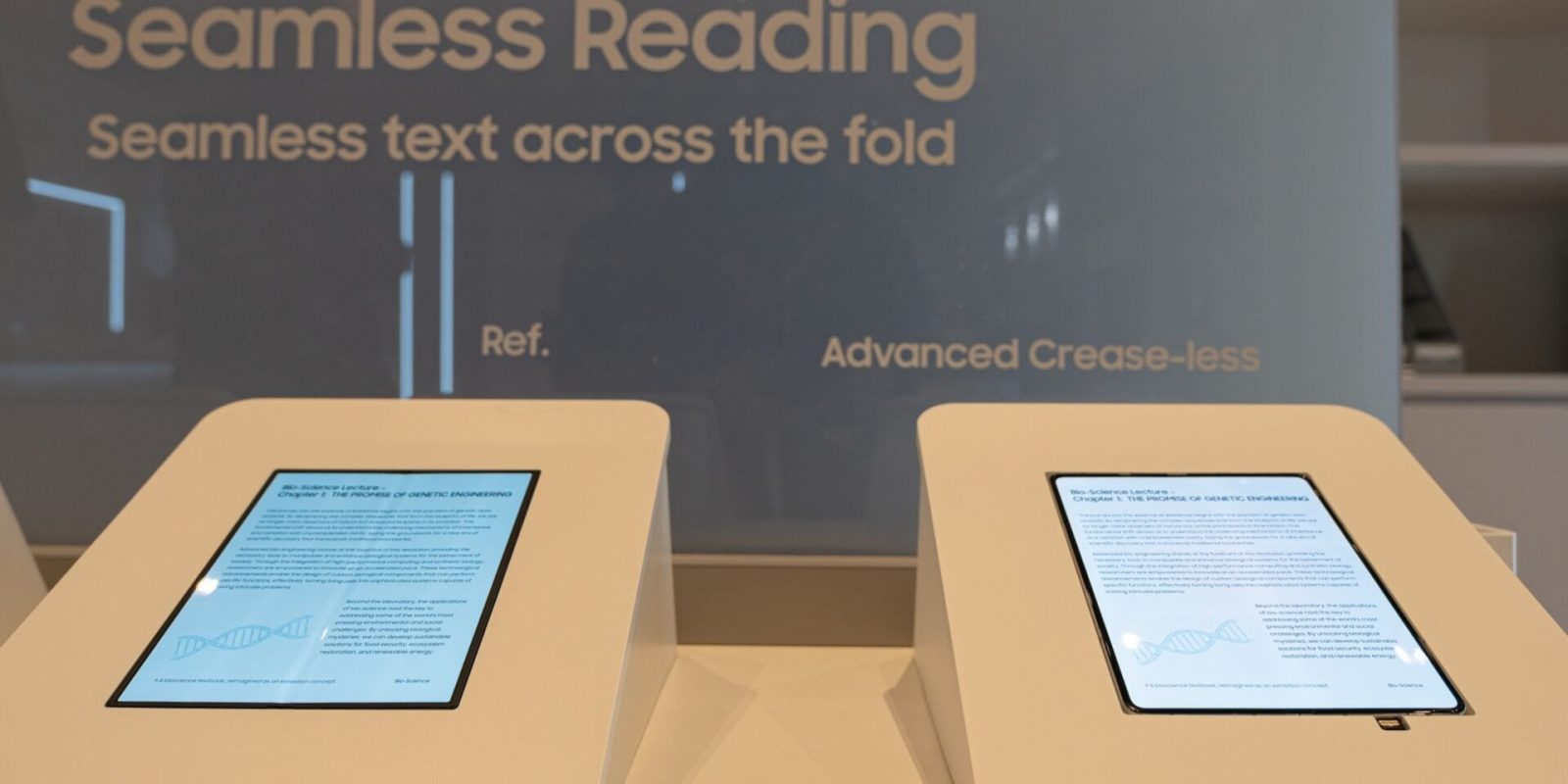 SamMobile spotted a new “Advanced Crease-less” foldable display among Samsung Display’s CES showcase. The new panel was shown next to a “regular” foldable display from the Galaxy Z Fold 7, and the difference is immediately noticeable. The display crease, even at an off-angle, is practically invisible. A video showing the display (below) leaves a little bit of a look at a crease, but it’s not bad at all.