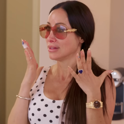 It’s a miracle that Angie has made it out of this season alive given her insistence on doing a violent pratfall every single episode. After walking into a platter of glasses last week, she emerges the next morning with a bruised, swollen lip that makes Mary gasp. But to be fair, we’ve seen far more mangled faces on these shows from voluntary cosmetic procedures — and at least we won’t spend a season and a half trying to figure out whether her bruise came from Jen Shah or not. To make matters worse, though, her high heel gets stuck in a Greek cobblestone, sending her stumbling into a limbolike Matrix pose … but she stays up!