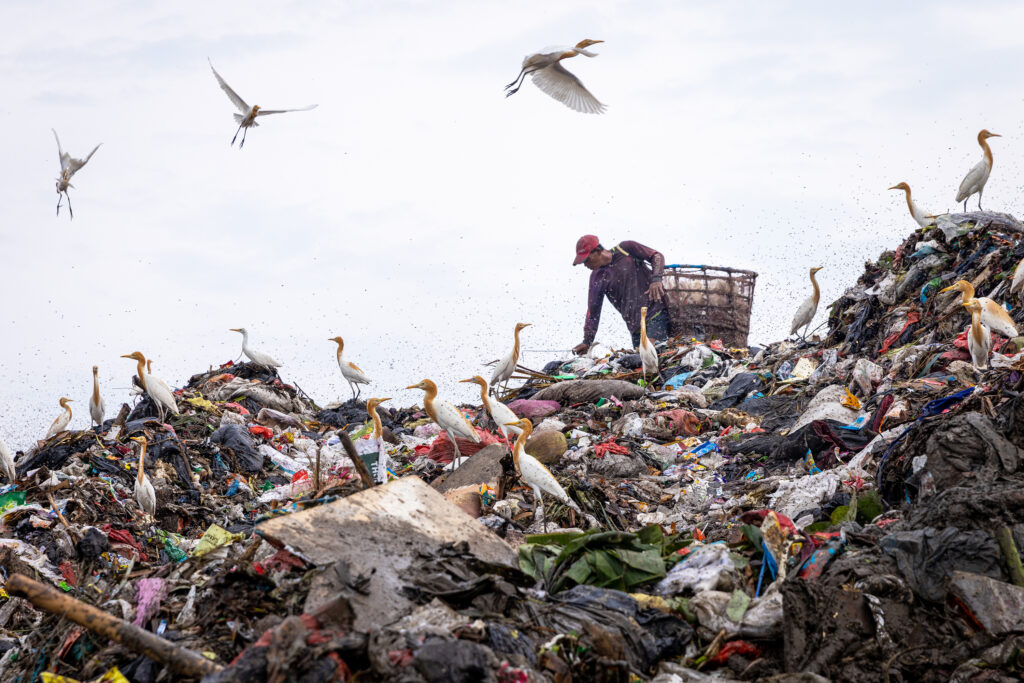 A man searches for salvageable items at TPA Suwung, Bali’s main landfill, in southern Denpasar — close to the island’s most popular beaches. Tourism drives roughly 70% of Bali’s economy, and waste from hotels, restaurants, and homes funnels here daily, revealing the environmental cost of the island’s global appeal. Sean Gallagher