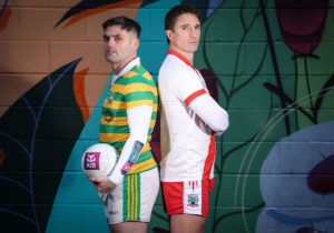 Pictured are AIB ambassadors Eoin Bradley (Glenullin) and Aidan Walsh (An Ghaeltacht) ahead of the AIB GAA Football All-Ireland Intermediate Club Championship Final between Glenullin and An Ghaeltacht. A historic club championship season, defined by thrilling encounters and unprecedented journeys, culminates in eagerly anticipated AIB GAA Football Intermediate and Junior club finals taking centre stage on Sunday January 11th.
