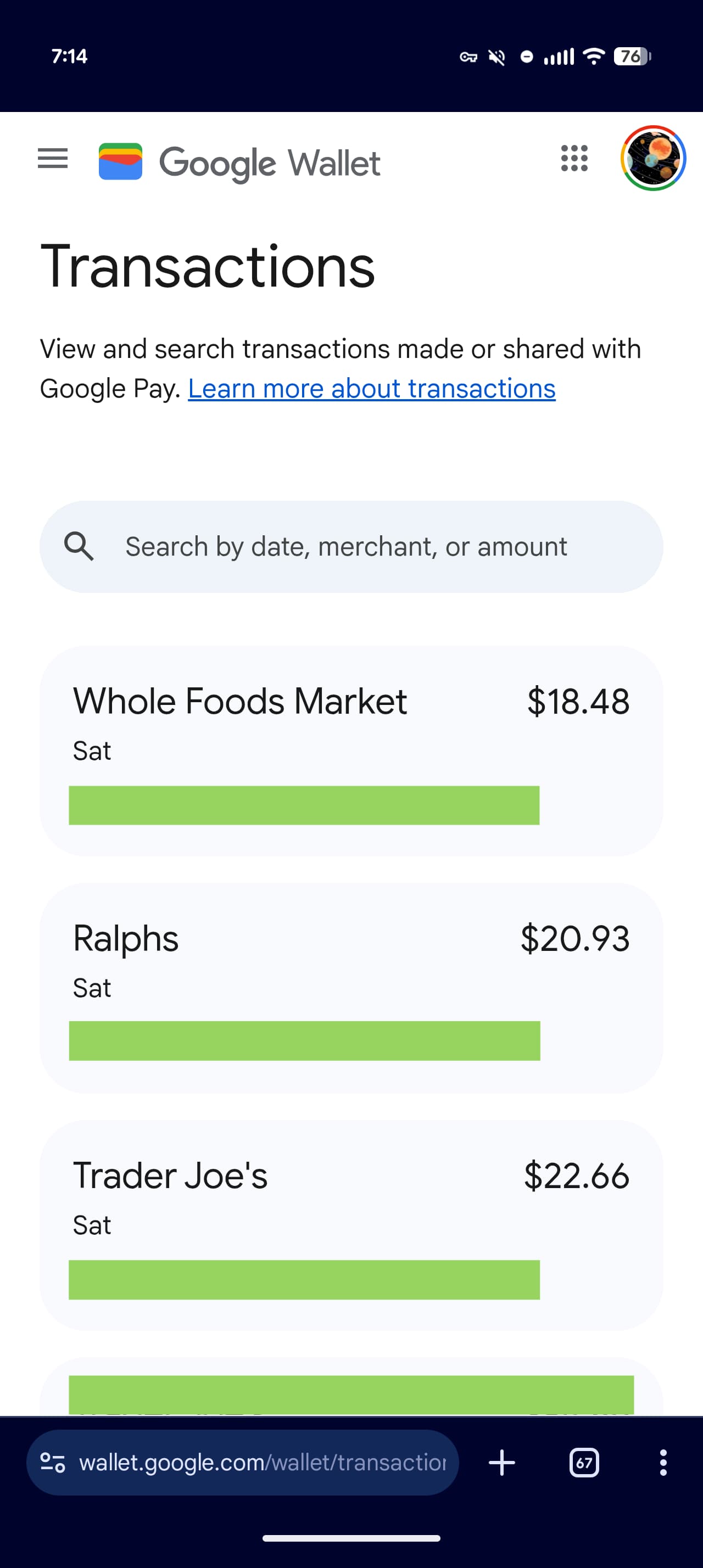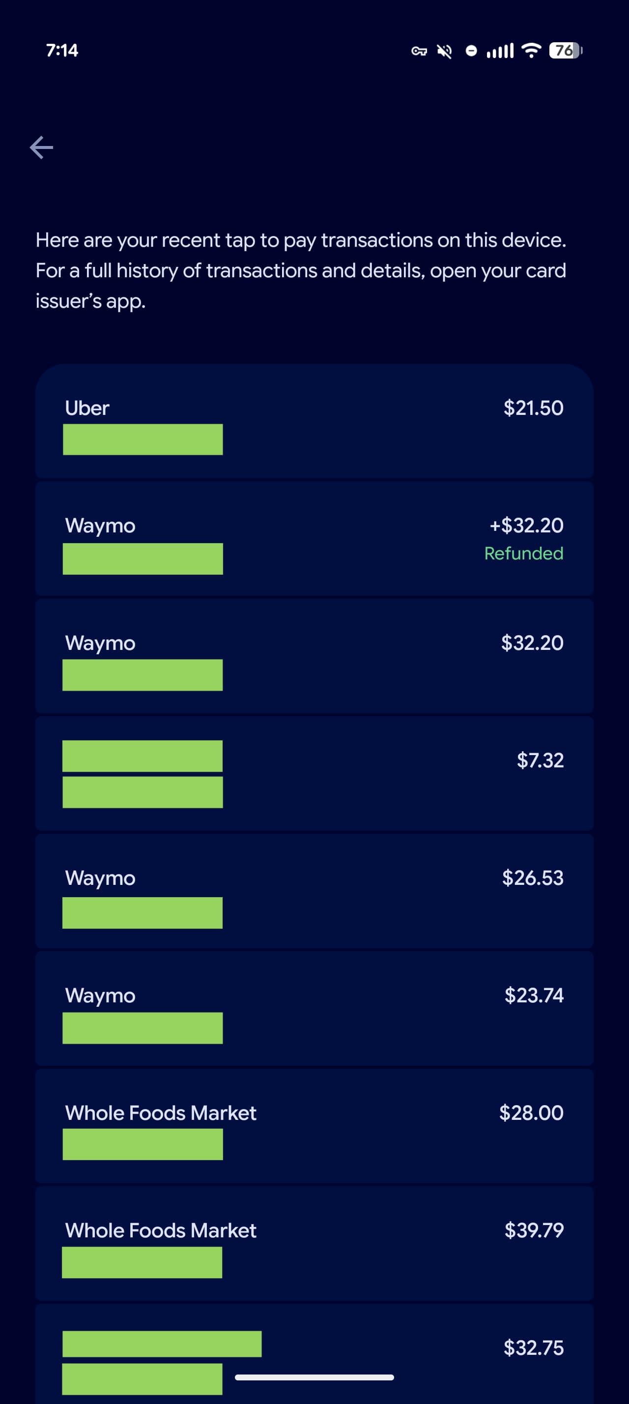 This list does not even include transactions from your paired Wear OS device.