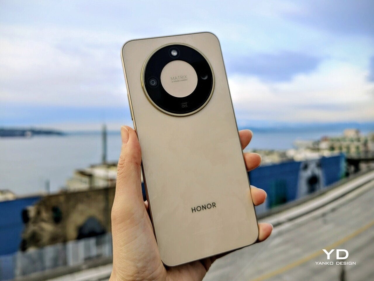 The Honor Magic8 Lite is available in Forest Green, Midnight Black, Reddish Brown, and Sunrise Gold in some markets, each one giving the camera ring a slightly different personality. The Reddish Brown version features a vegan leather finish that adds warmth and tactility, while the others use a matte surface that keeps fingerprints under control. The Sunrise Gold option adds a subtle, waterpaint-like pattern that shimmers as you tilt it, giving the phone a more premium character than the materials list would suggest.