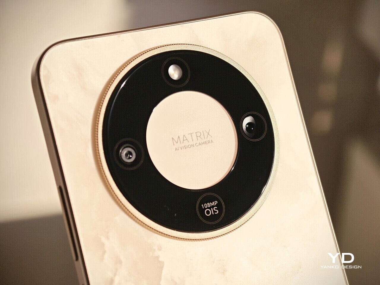Instead of a single black disc, Honor has adopted a ring-based layout for the Magic8 Lite camera island. The black outer circle houses two cameras and the LED flash, while the inner circle carries the “Matrix AI Vision Camera” text as a graphic centerpiece. The circle is bold enough that your eye goes straight to it, which instantly gives the phone a recognizable appearance from almost any angle. It feels more like a deliberate design motif than a simple camera bump, and that makes the back visually memorable.