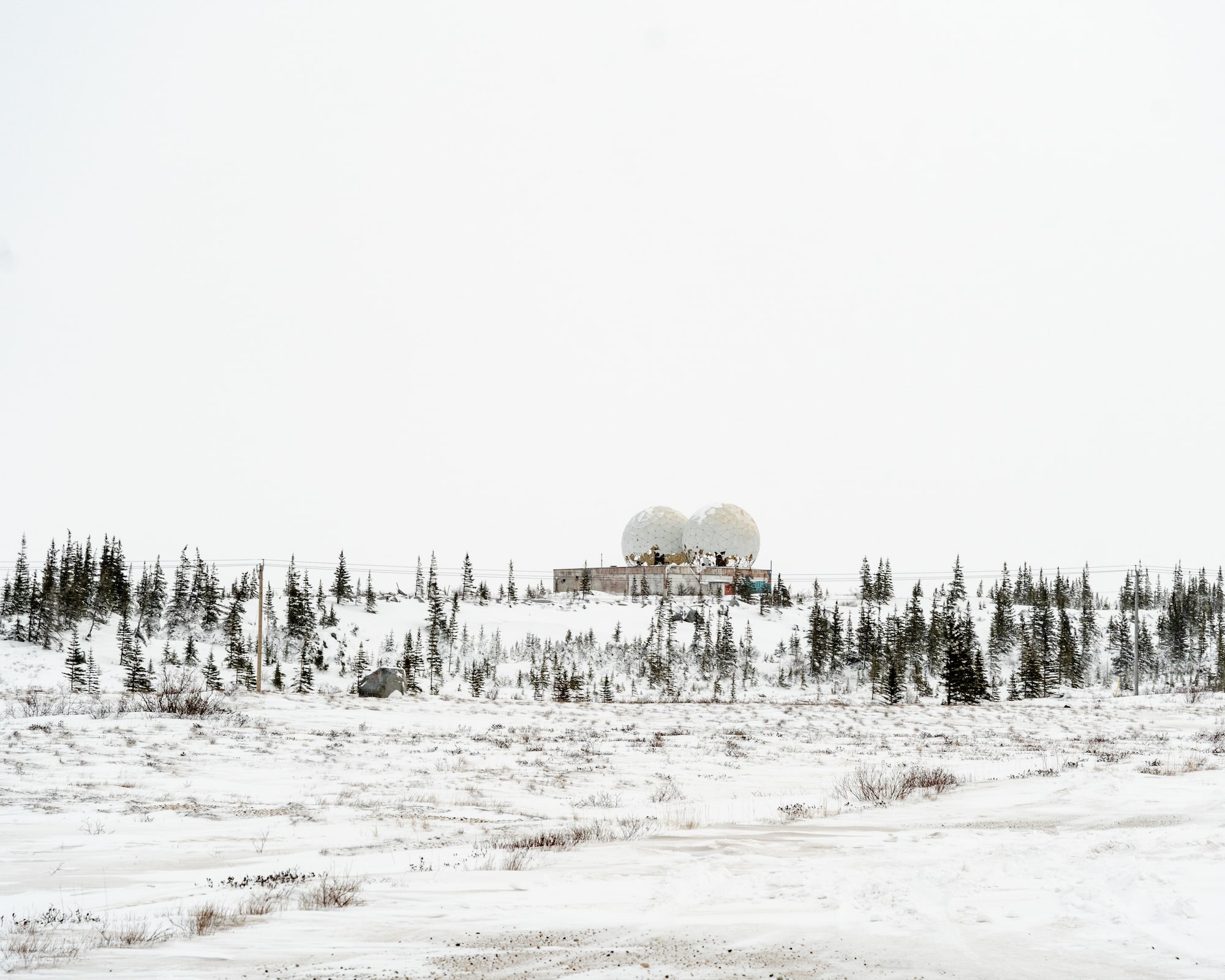 A now-defunct radar station, known locally as the Churchill ‘Golf Balls,’ sits on a ridge near the shores of Hudson Bay.