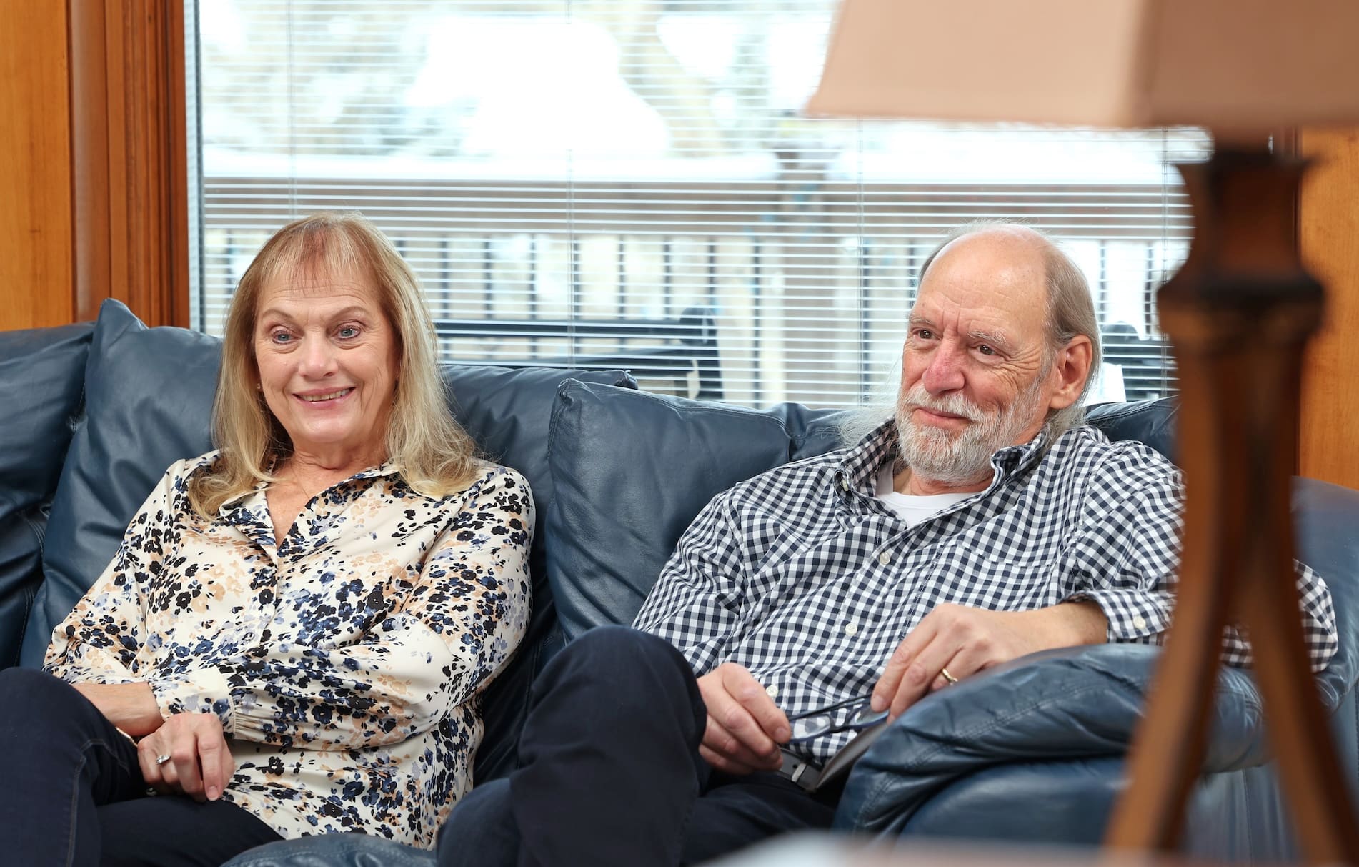 Kathy sits on the couch beside him. It’s a house she designed. Picture windows bring the outdoors in, and everything feels warm and spacious. Birdfeeders crowd near a dining room window, perfect for watching with morning coffee.