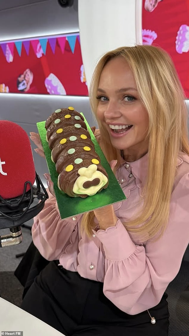 Baby Spice started off her milestone day live on Heart FM as she co-presented the breakfast show with Jamie Theakston