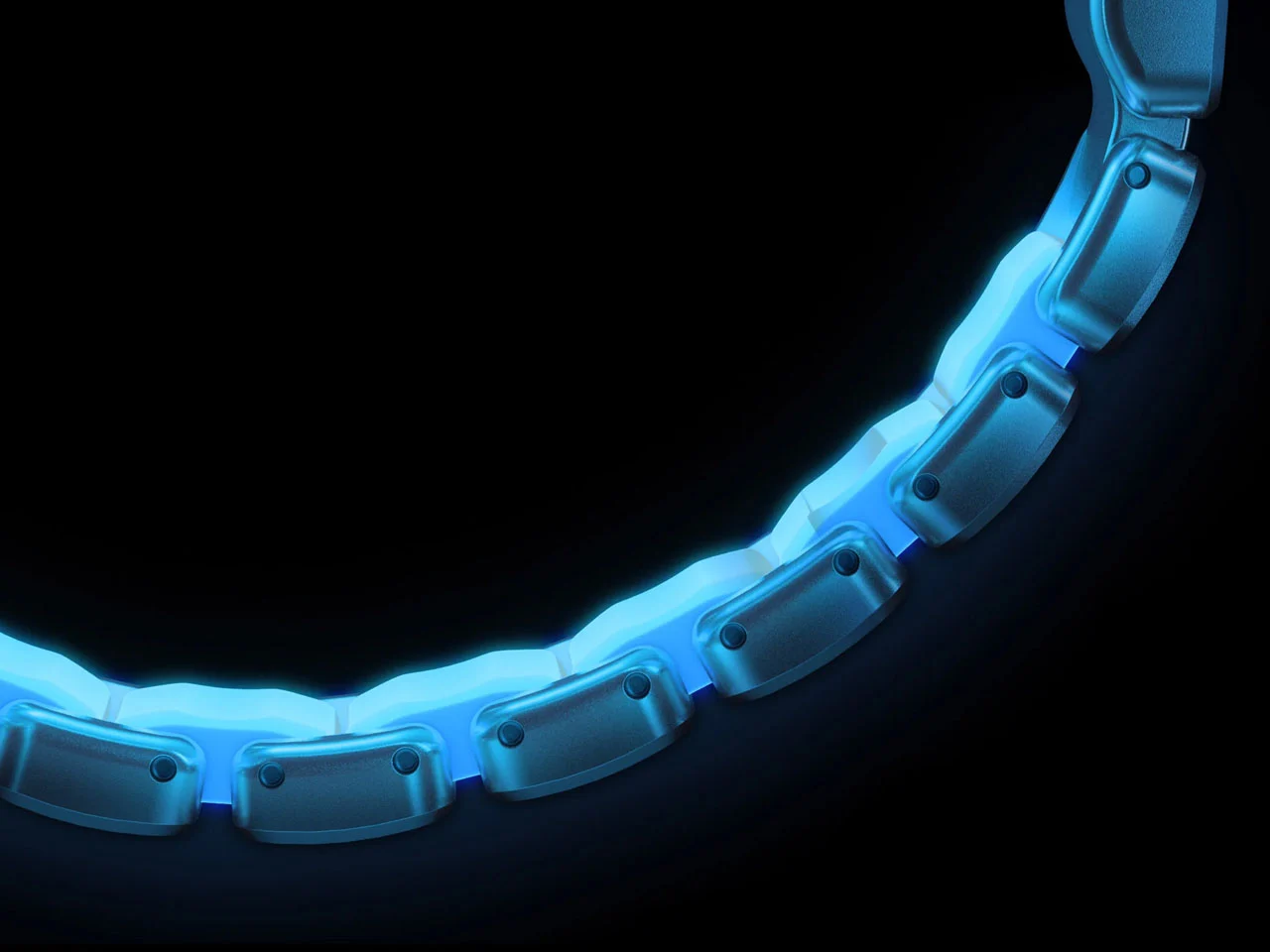 The new Stratos Band blends Grade 4 titanium hardware with compression-molded FKM fluoroelastomer for a hybrid design that balances strength and flexibility. The titanium outer links provide a refined look and robust build, while the FKM interior links contour around the wrist for comfort and movement that traditional metal bands rarely offer. This dual-material approach also introduces subtle ventilation spaces, which help with moisture evaporation and breathability during everyday wear or more intense activity.