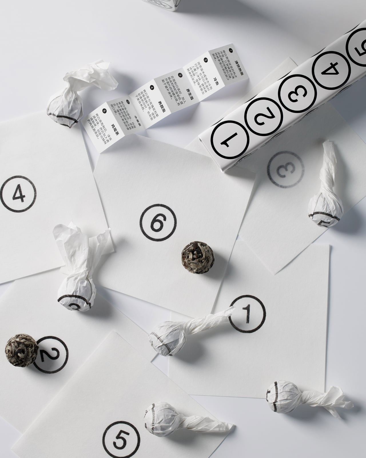 The concept is beautifully simple. Six white tea pearls, six numbers, one hexagonal tube. Each face of the package displays both a Chinese character and its corresponding Arabic numeral, from one through six. It’s the kind of design that makes you wonder why nobody thought of it sooner, which is usually the hallmark of really smart packaging.