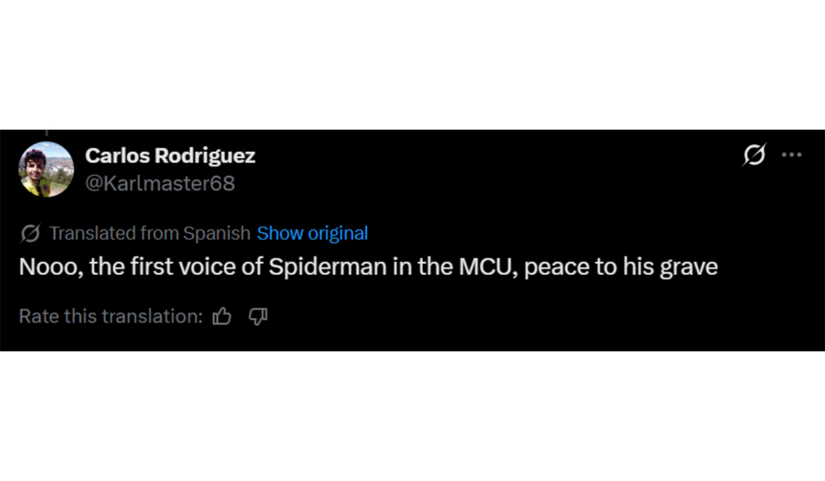 One wrote: ‘Nooo, the first voice of Spiderman in the MCU [Marvel Cinematic Universe], peace to his grave.’