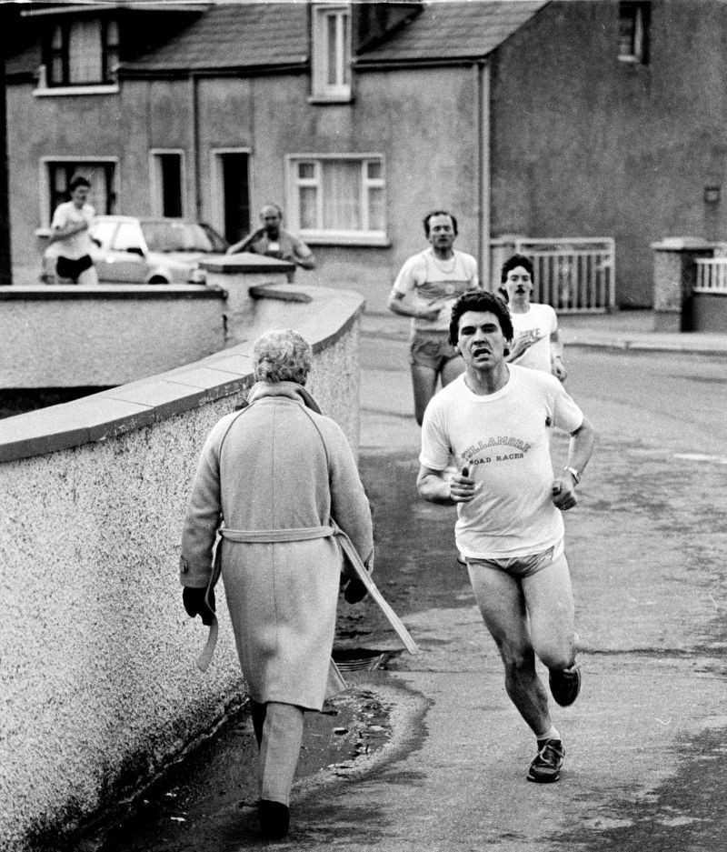 A woman goes her own way during a 5K race in Ballybofey in 1986. Can you name any of them? Pic: Declan Doherty.