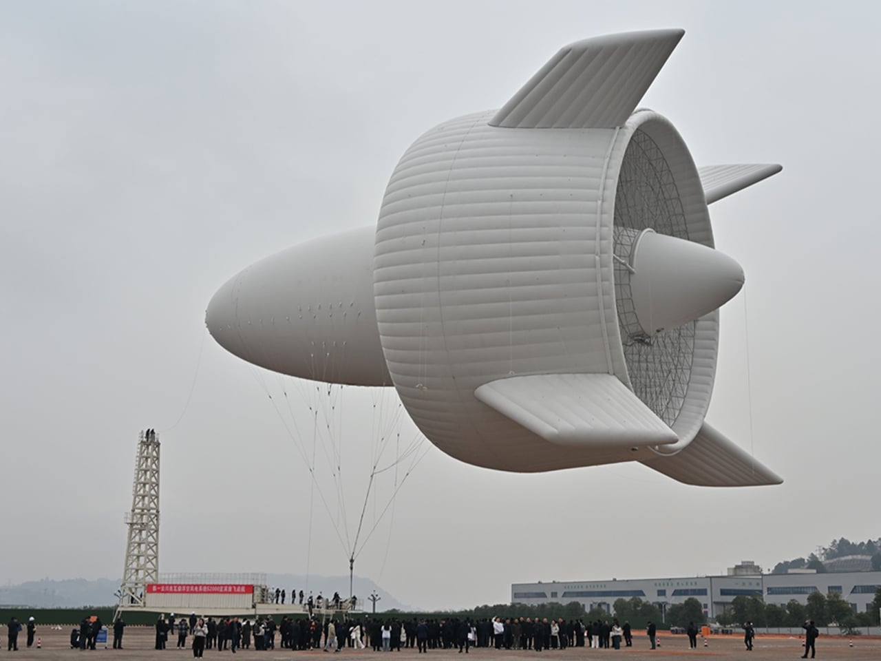 The system measures 60 meters long, is 40 meters high, and also 40 meters wide. The big thing took almost 30 minutes to ascend to 2,000 meters in the Yibin test. When at that altitude, it was able to maintain a stable hover, while generating power and delivering it back to the grid. The system basically uses a helium-filled balloon to get the power generation unit high into the atmosphere, where winds are generally stronger and more consistent than those near the ground. This means a power generating unit in the higher altitudes can generate and transmit several times more power compared to ground-based turbines, that with a lower carbon footprint.