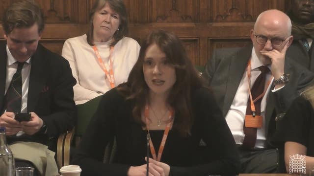 Kate Nash appearing before the Culture, Media and Sport Committee (House of Commons/UK Parliament/PA)