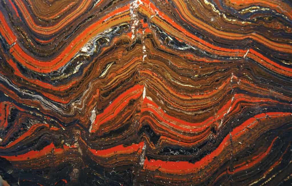 Iron formations accumulate in water that’s rich in dissolved iron. Oxygen transforms the easily dissolved, greenish “ferric” form of iron into rusty red “ferrous” iron that stays solid. That’s why almost all iron formations are ancient, relics of a time before Earth’s atmosphere started filling with oxygen about 2.4 billion years ago, or from the more recent snowball Earth, when the seas were sealed under ice. Unable to soak up oxygen from the air or from photosynthesis, snowball Earth’s dark, ice-covered seawater drained of oxygen.