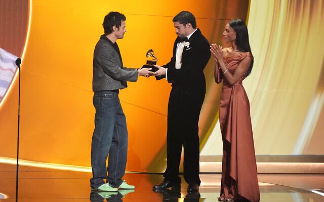 Harry Styles, left, presents the award for album of the year to Bad Bunny for “Debí Tirar Más Fotos” during the 68th annual Grammy Awards on Sunday, Feb. 1, 2026, in Los Angeles. (AP/Chris Pizzello)