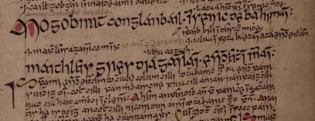 Entry for St Gobnait (top line) from a 15th-century copy of the Félire Óengusso, now at