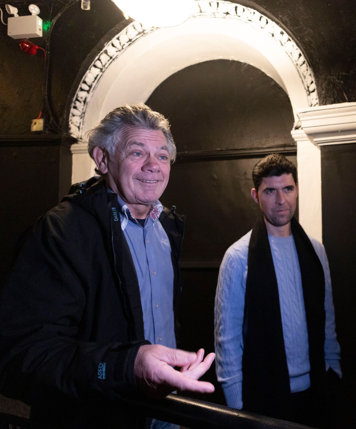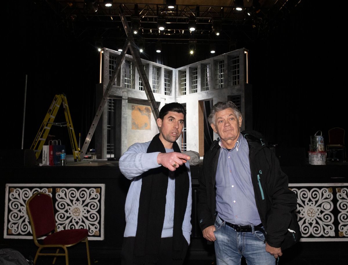 Gerry ‘The Monk’ Hutch and actor Rex Ryan as they get an exclusive behind the scenes look at the Monk Set, ahead of the theatre production of The Monk. (Image: Sam Boal/Collins )