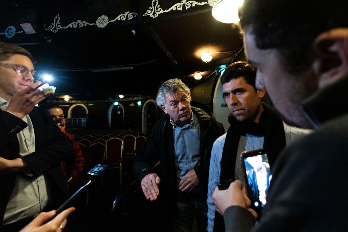 Actor Rex Ryan and Gerry ‘The Monk’ Hutch pictured in the Ambassador Theatre, Dublin. (Image: Sam Boal/Collins)