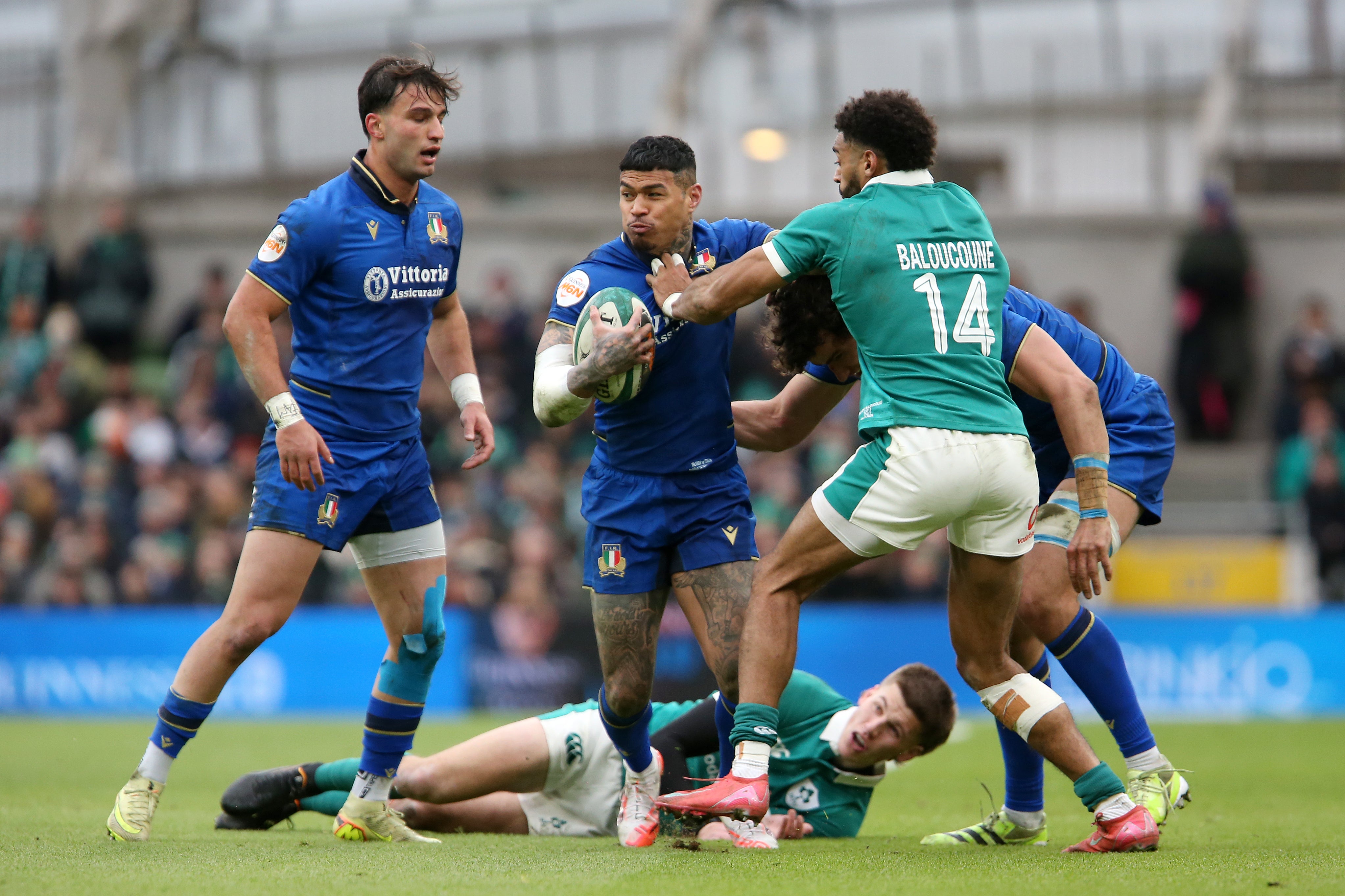 Some good Italy phases but a clever offload is knocked on. Prendergast collects but a poor kick allows Italy possession again.