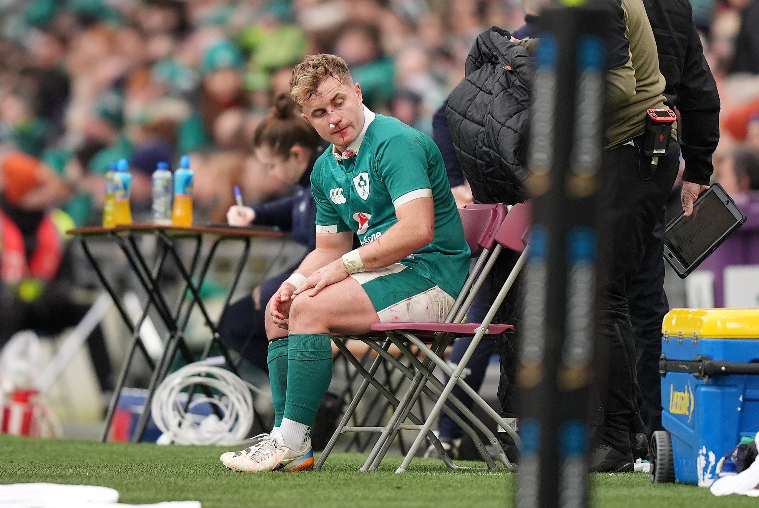 The clocks ticks past 40 minutes as Ireland load a scrum.