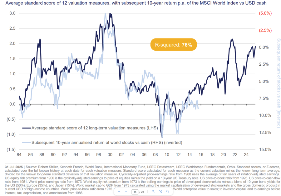 It seems “realistic” that equity markets deliver nothing or even lose money, thanks to the dominance of US stocks, which make up roughly 70% of the MSCI World index.