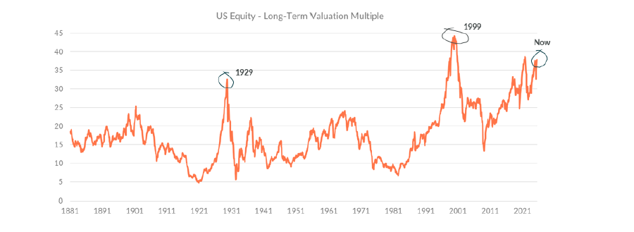 As Evan-Cook noted, while current valuations are not at the 1999 peak, they are approaching it. And global markets have become even more dominated by the US than they were 25 years ago.