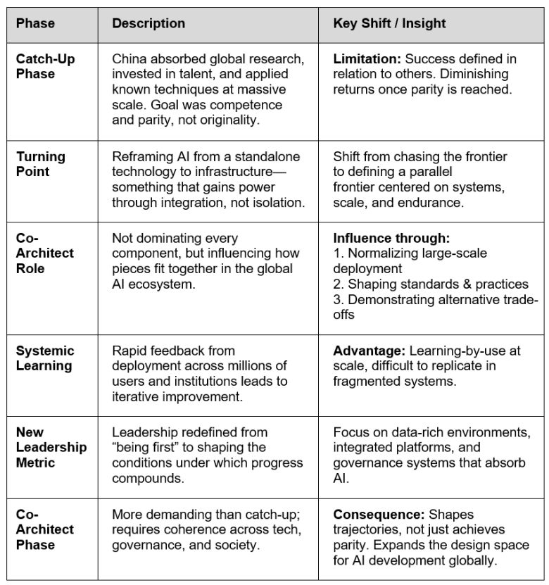 A key issue in the AI era is not who builds the most powerful model. It is what different societies want intelligence to do. And on that metric, China is not merely competing in a Western-defined race. It is redefining the destination.