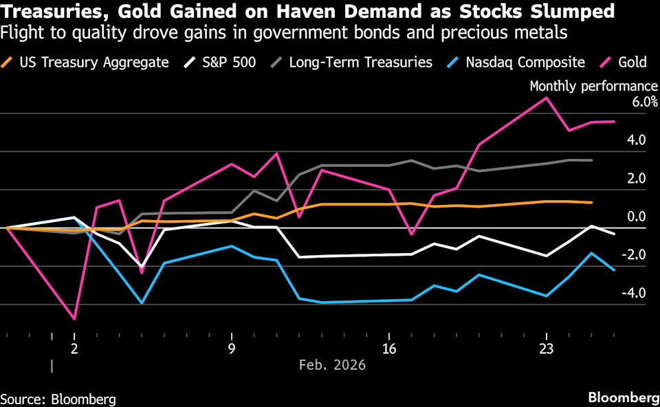 (Bloomberg) — The fast‑moving conflict across the Middle East is heightening investor anxiety and strengthening the case for safe‑haven trades such as Treasuries, gold and the Swiss franc.