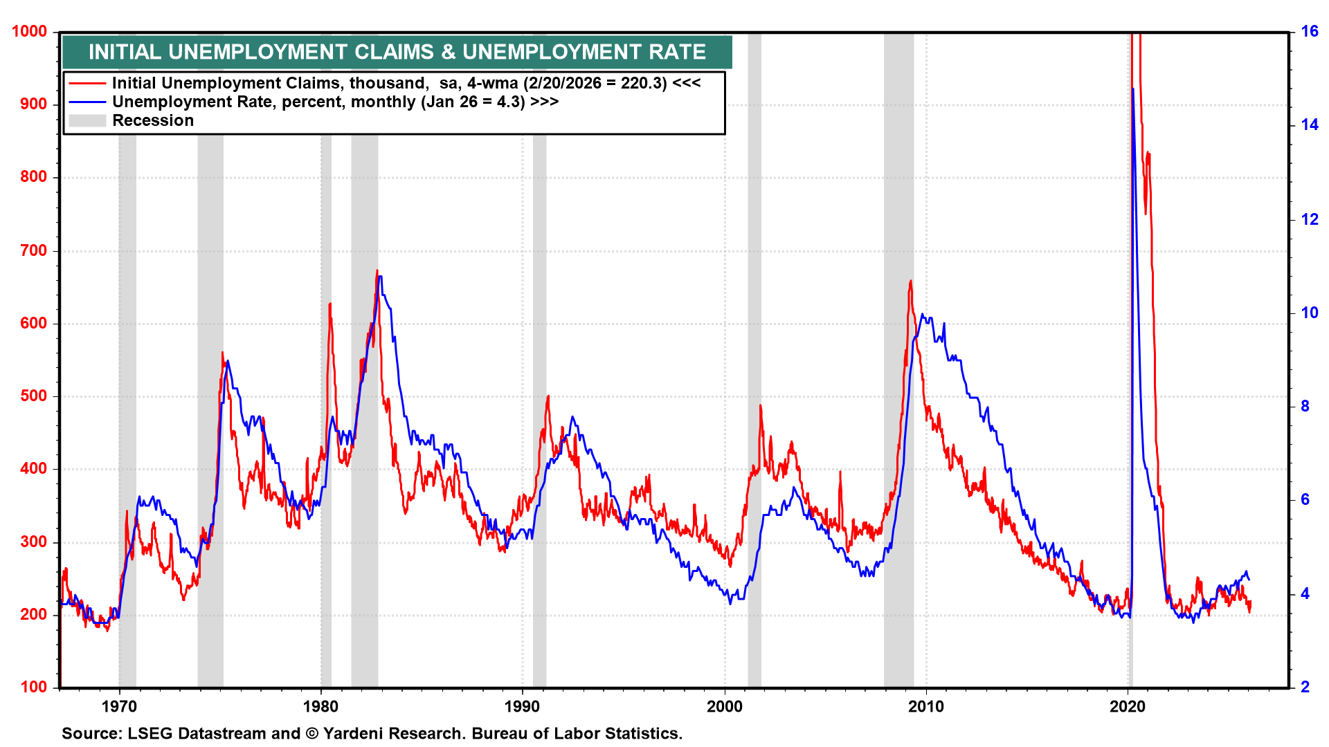 (2) Retail sales. The January retail sales report (Fri) will be an important reality check following a flat December reading. Most forecasts center on a roughly 0.2% m/m drop last month. Still, with employment holding its ground and the stock market near record highs, spending patterns should hold up as well, as confirmed by the weekly Redbook Retail Sales index (chart).