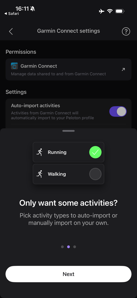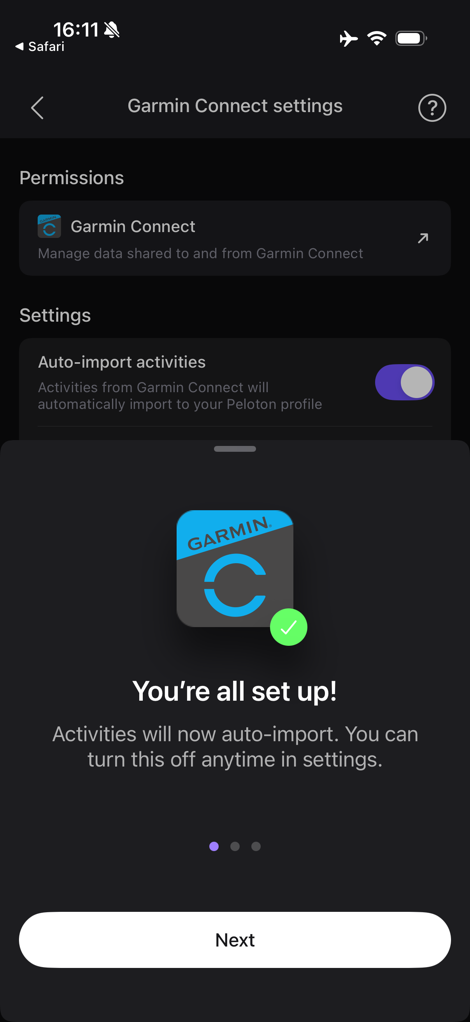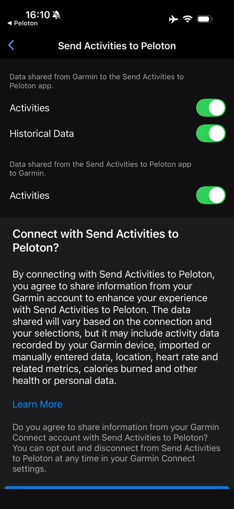 This is the piece that previously would have enabled enabled sync from Garmin to Peloton, including Historical Data (if you toggled it, it’s off by default), and then a new option that syncs from Peloton to Garmin.